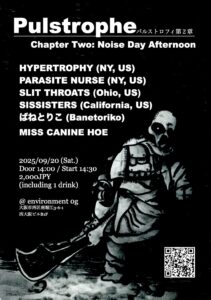Since 2024, they have started an experiment to interpret Seiichi Niikuni’s concrete poetry as graphic notation and create works as sound/visual art using video synthesizers as well. Some of these were performed at a live concert in August 2024.